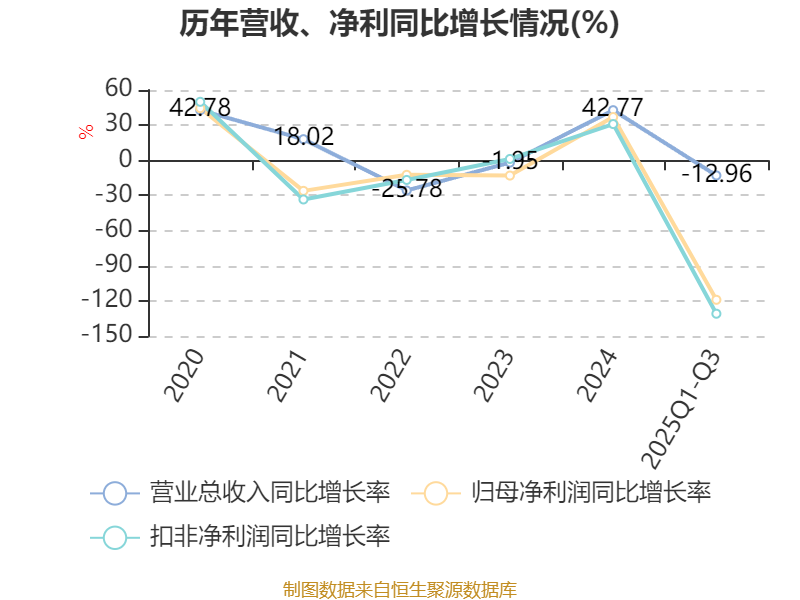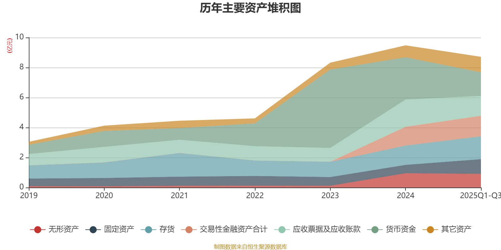 资产重大变化方面,截至2025年三季度末,公司货币资金较上年末减少44.05%,占公司总资产比重下降11.61个百分点;固定资产较上年末增加75.49%,占公司总资产比重上升5.37个百分点;应收票据及应收账款较上年末减少27.31%,占公司总资产比重下降4.03个百分点;存货较上年末增加18.17%,占公司总资产比重上升3.87个百分点。