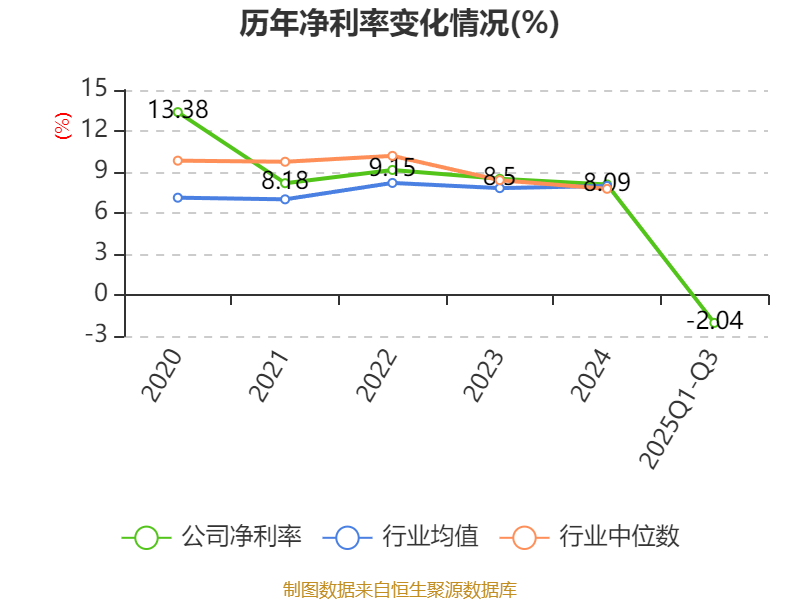 盈利能力方面, 2025年前三季度公司加权平均净资产收益率为-1.51%,同比下降9.53个百分点。公司2025年前三季度投入资本回报率为-1.56%,较上年同期下降8.82个百分点。