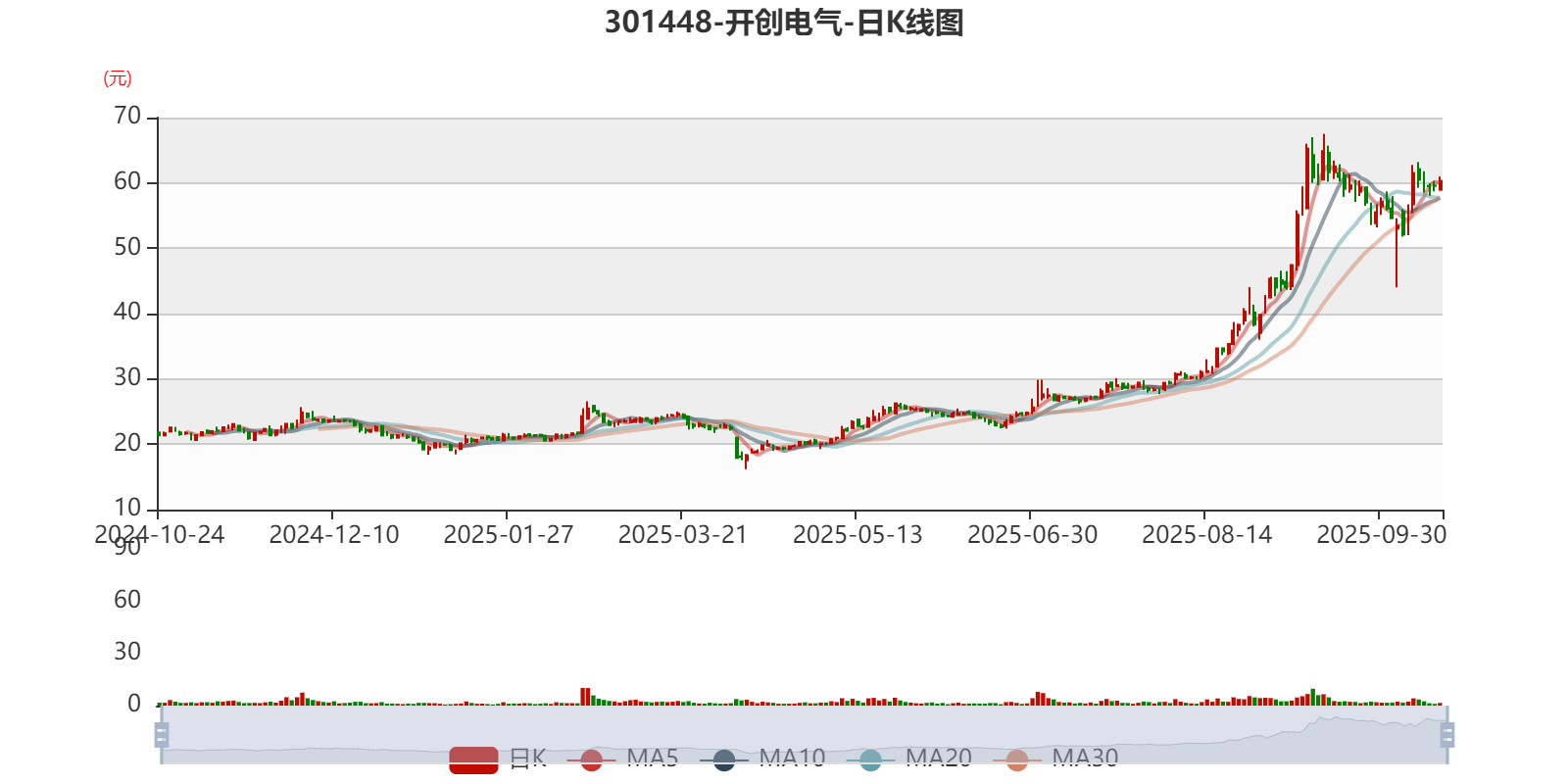 以10月23日收盘价计算,开创电气目前市盈率(TTM)约为1221.72倍,市净率(LF)约9.25倍,市销率(TTM)约8.21倍。